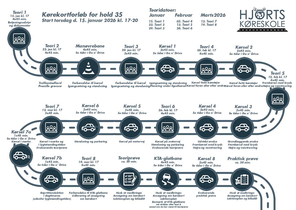 Tirsdag d. 14 oktober 2025 kl. 17:00 - 20:00 | Hold 32. Holdstart tirsdag d. 14. oktober 2025 kl. 17-20 Er du på efterårsferie den første teoriaften - finder vi en løsning på det. | 1 ledige pladser